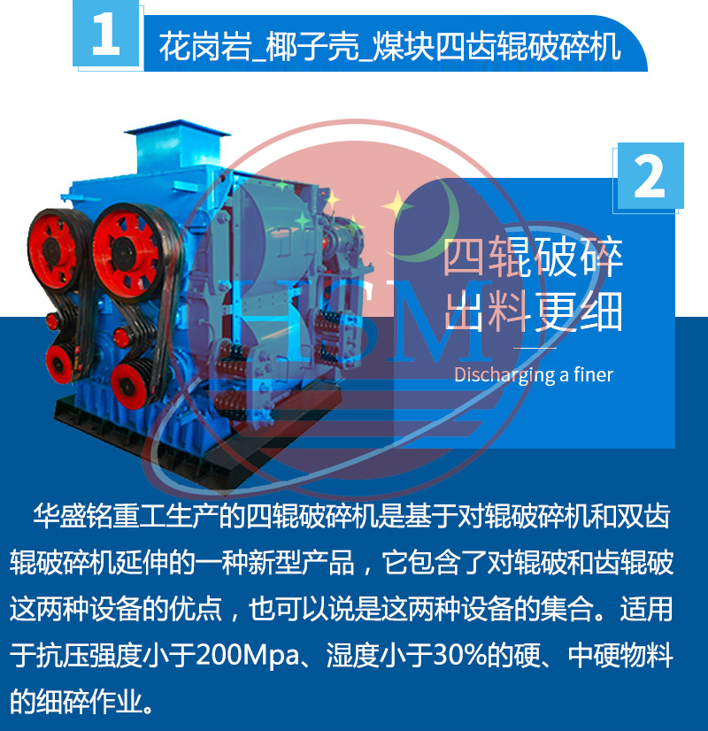 【產(chǎn)品價格】: 電議/面議???【生產(chǎn)能力】: 2-500t/小時 【進料粒度】:?≤90mm???【出料粒度】:??≤0.1-50mm? 【應用范圍】: ?四輥破碎機適用于抗壓強度小于200Mpa、濕度小于30%的硬、中硬物料的細碎作業(yè)。如焦炭、煤、陶瓷原料、石英石、石灰石、長石、水渣、石膏、粘土等固體物料。? 【產(chǎn)品介紹】: ?華盛銘重工生產(chǎn)的四輥破碎機是基于對輥破碎機和雙齒輥破碎機延伸的一種新型產(chǎn)品,它包含了對輥破和齒輥破這兩種設備的優(yōu)點,也可以說是這兩種設備的集合。本機器具有使用維修費特低、破碎比大、性能可靠、粉塵少、噪音低等特點。